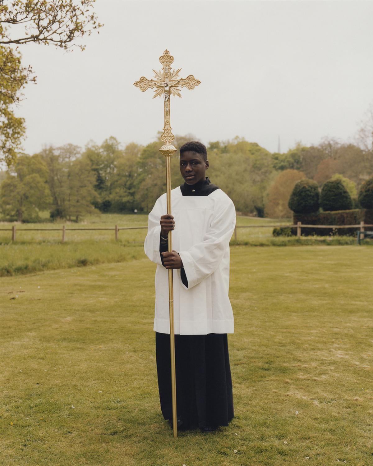 I went to Norfolk, England, to document the annual National Pilgrimage in Walsingham, which sees people gather from across the UK and the world to celebrate one of the biggest Anglican events. This boy holding a golden cross caught my eye and I asked him if I could take his portrait before he set off in the procession.