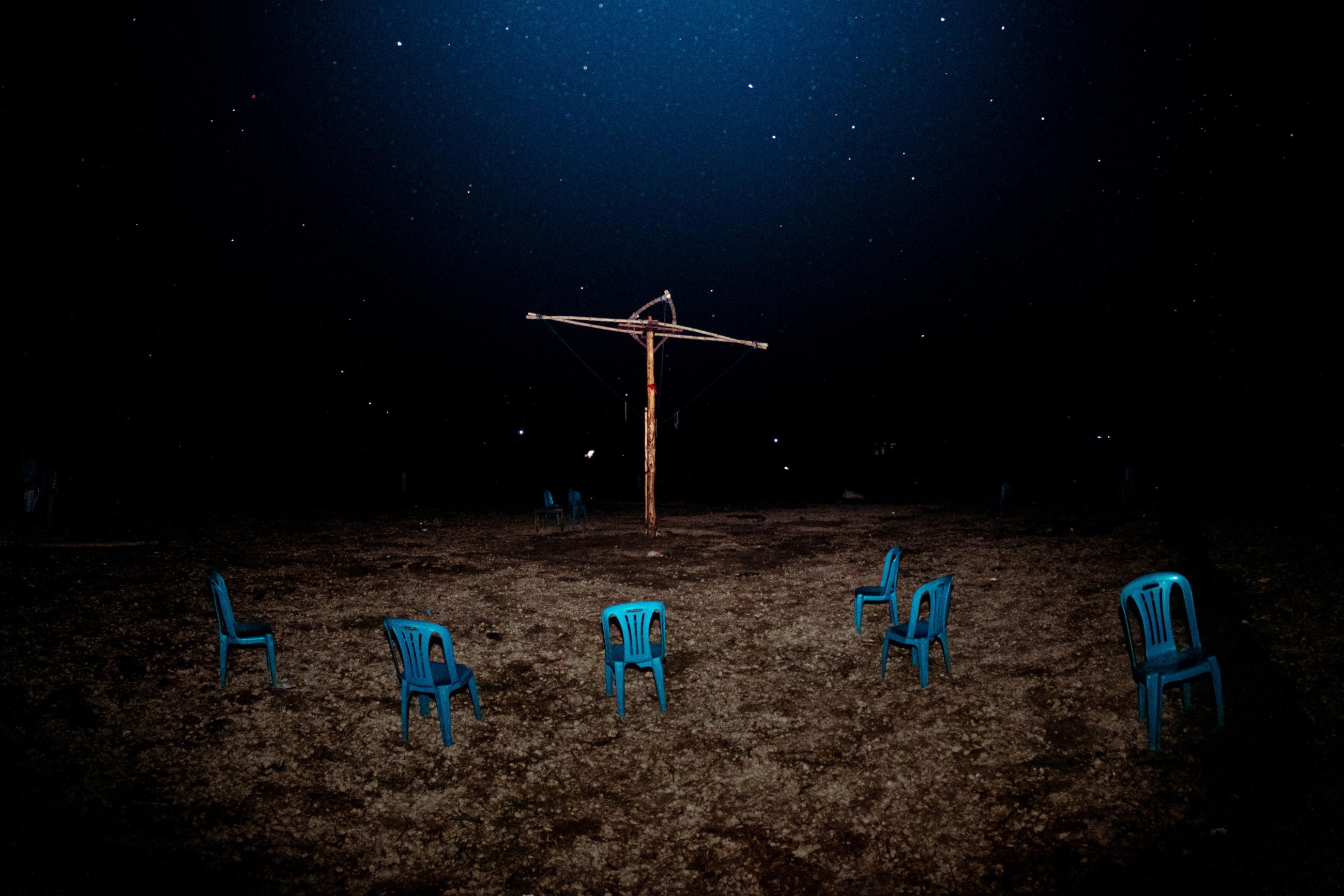 Amidst a vast abandoned waste marble dumping yard in Kishangarh, Rajasthan, a lone tree reaches towards the sky, its bare branches a testament to its resilience. Hanging from the branch, the vivid burst of colour of the two bags introduces a touch of humanity. In this image, the photographer reflects on the delicate balance between nature and human presence in an unforgiving landscape.