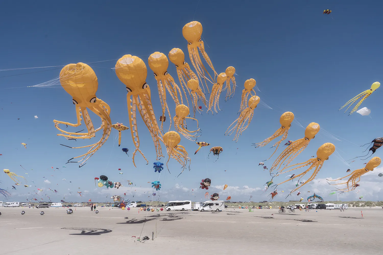 These elaborate handmade kites were photographed at the Fanø International Kite Fliers Meeting, one of the world’s largest kite flying events.