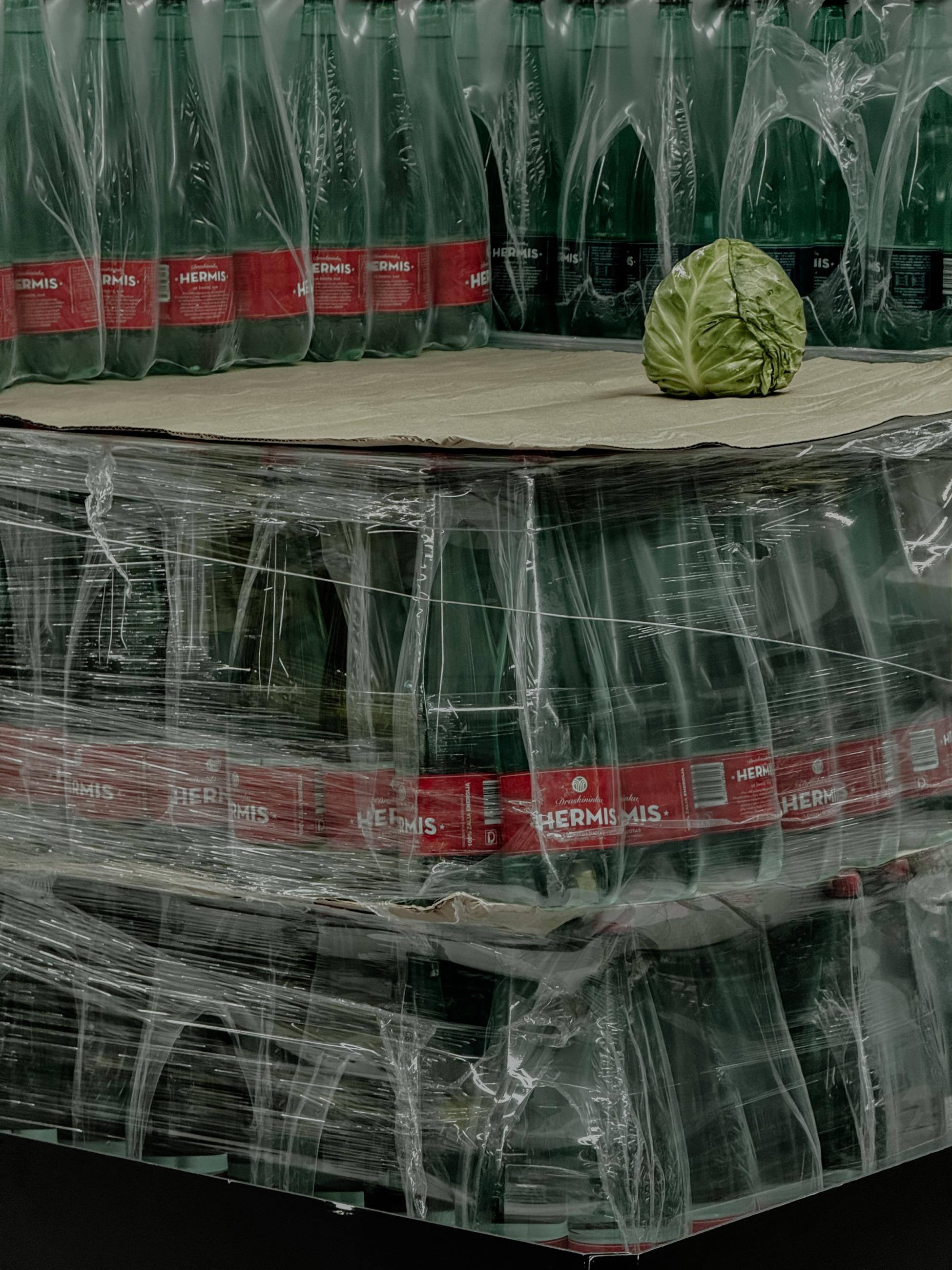 Misfit captures the quiet rebellion of a lone cabbage among rows of identical plastic bottles. Its vibrant, organic green colour clashes with the muted, artificial hues of the bottles, amplifying its isolation. Encased in synthetic plastic, the scene underscores the tension between nature and industry – a small, unapologetic act of defiance that breaks the monotony of uniformity.