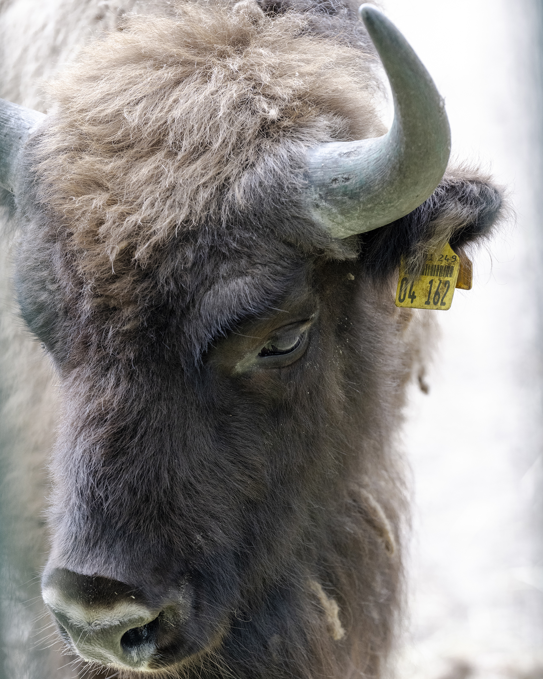 In Berlin, the hub for European Bison reintroduction, each animal is given a number and a name for recognition. This species was extinct in the wild at the start of the 20th century and its reintroduction was the world's first successful undertaking of this kind. Here, a young male named Homas is among seven bison planned to be sent to Azerbaijan, where WWF and other local partners run a new reintroduction program. Berlin, Germany.